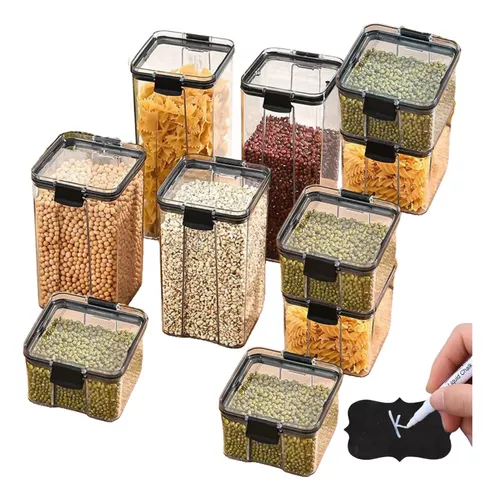 Kit 10 Potes P/ Alimentos Herméticos Quadrados Empilháveis